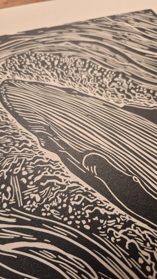 Derrière ce nom, il y a moi, Alice. J’ai toujours adoré faire avec les mains : couture, tricot, perles, peinture… En mai 2025, mon père m’a fait découvrir la linogravure et ça a été le déclic. J’aime le rythme lent, la concentration du geste et ce moment où l’image apparaît enfin sur le papier.