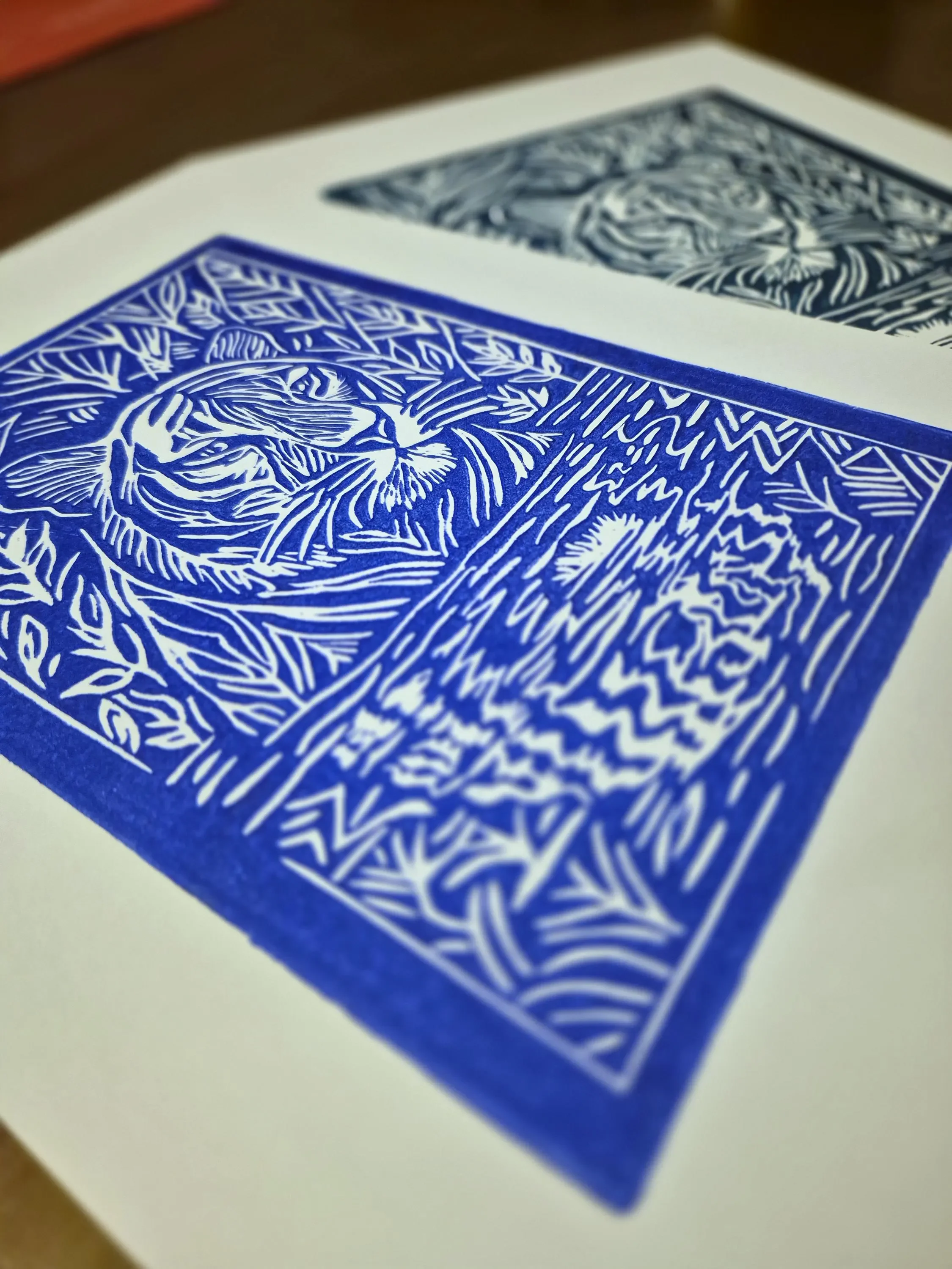 Je réalise des linogravures, gravées et imprimées à la main en petites séries, prêtes à être accrochées chez vous.